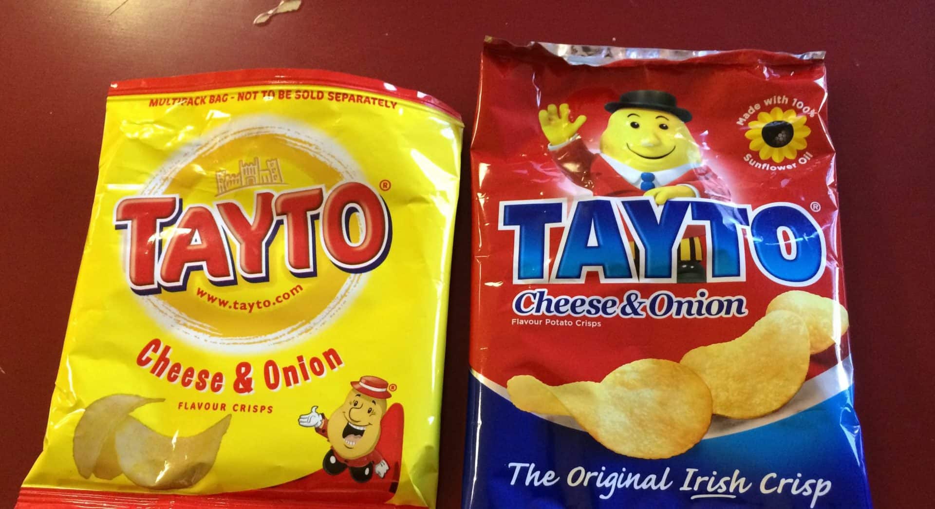 Travelling around the Republic of Ireland and Northern Ireland, you might notice different packaging on the Tayto crisps. These are two other brands. Joe Murphy created the original Tayto, and two years later, the Hutchinson family got the name and recipes licensed to use in Northern Ireland.